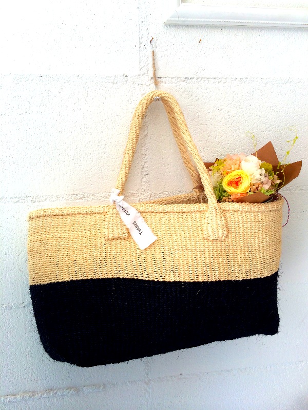 ジュートで編まれたトートバッグに花束を添えるのもおすすめです。