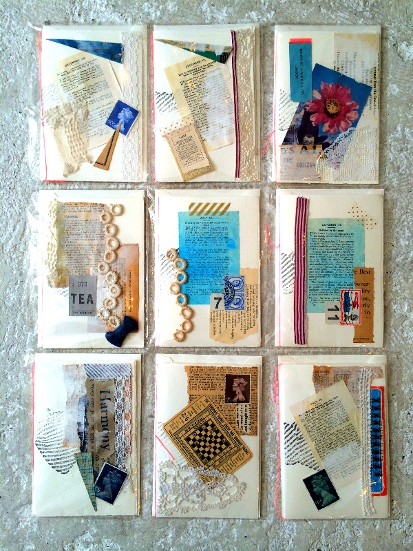 イギリスのヴィンテージレースや切手などを1点ずつコラージュした、世界に1枚だけのメッセージカードです。
